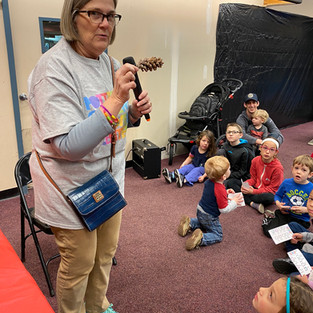 Pottstown Children's Discovery Center's hard working leader read a couple books to the group of gathered children. The kids loved listening, learning, answering questions and telling their own thoughts nature and pinecones. We had a smart bunch of kiddos with us!